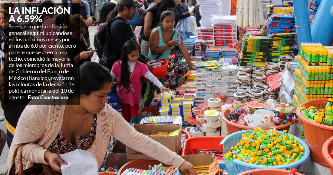 Los abarrotes (aceite comestible, arroz, azúcar, harina y frijol) subieron un 21.30 por ciento y las frutas (limón, manzana, naranja, papaya, sandía, piña, plátano y guayaba) incrementaron un 15.38 por ciento anual en agosto.