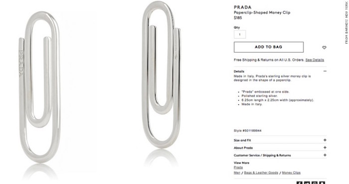 Prada is selling a $185 paper clip and it doesn't even help you write a resumé. pic.twitter.com/sLEjKRKM1o