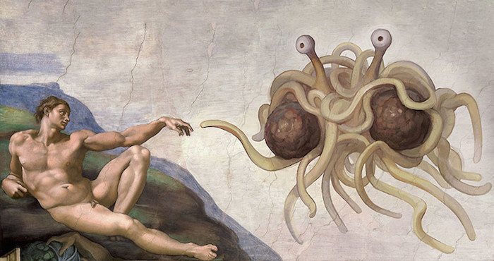 La Iglesia del Monstruo Volador de los Espaguetis fue creada en 2005 en Estados Unidos como acto de protesta contra la enseñanza del creacionismo en las escuelas.