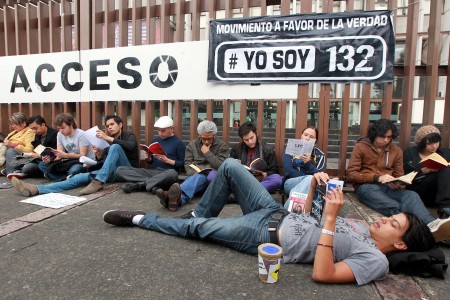 20811060. México, D.F.- Integrantes del Movimiento #Yo Soy 132, llevaron a cabo una lectura masiva intentando romper el record guiness de más personas leyendo simultáneamente en los alrededores de las instalaciones del Comité Ejecutivo Nacional del PRI .