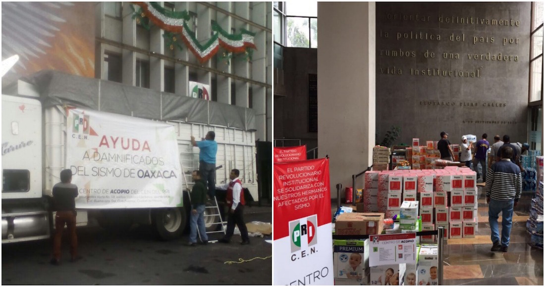 Al estilo del panista Miguel Ángel Yunes en Veracruz, el Partido Revolucionario Institucional (PRI) se aprovechó también de la tragedia por el sismo que azotó a México para llevar despensas a los damnificados en Oaxaca.