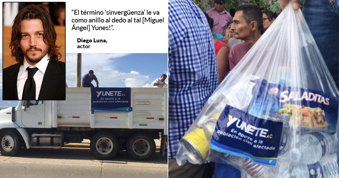 En las fotos se apreciaban camiones y camionetas con la leyenda “Yunete A.C.”, y con el slogan “En apoyo a la población civil afectada”. También se observaron mujeres portando playeras azules entregando despensas con la misma etiqueta.
