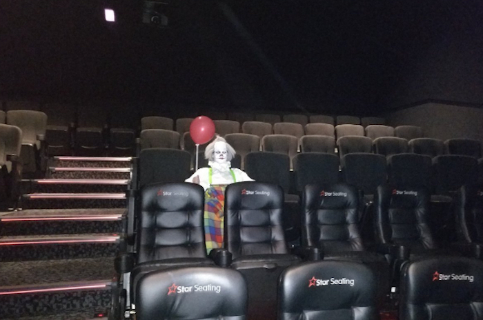 "Fui a ver IT. Era el primero en el cine y este jodido tipo estaba ahí sentado", relata. Para después contar también por la red social que el payaso se movía por el cine.