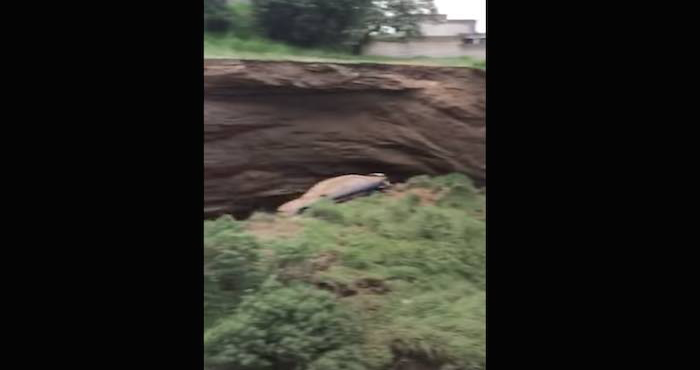 En un video difundido en redes sociales se observa la magnitud del socavón y cómo un automóvil de marca Dodge Neón, fue arrastrado por la tierra.