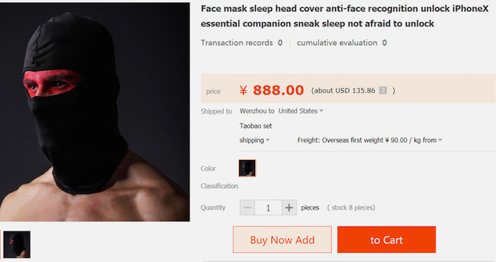 Unos días después del anuncio de la nueva función, en la tienda 'online' china Taobao aparecieron máscaras especiales, las cuales prometen proteger al propietario de un intento de desbloqueo del iPhone X utilizando su rostro. Los precios de las prendas oscilan entre los 25 yuanes (cerca 4 dólares) y los 888 yuanes (unos 135 dólares).