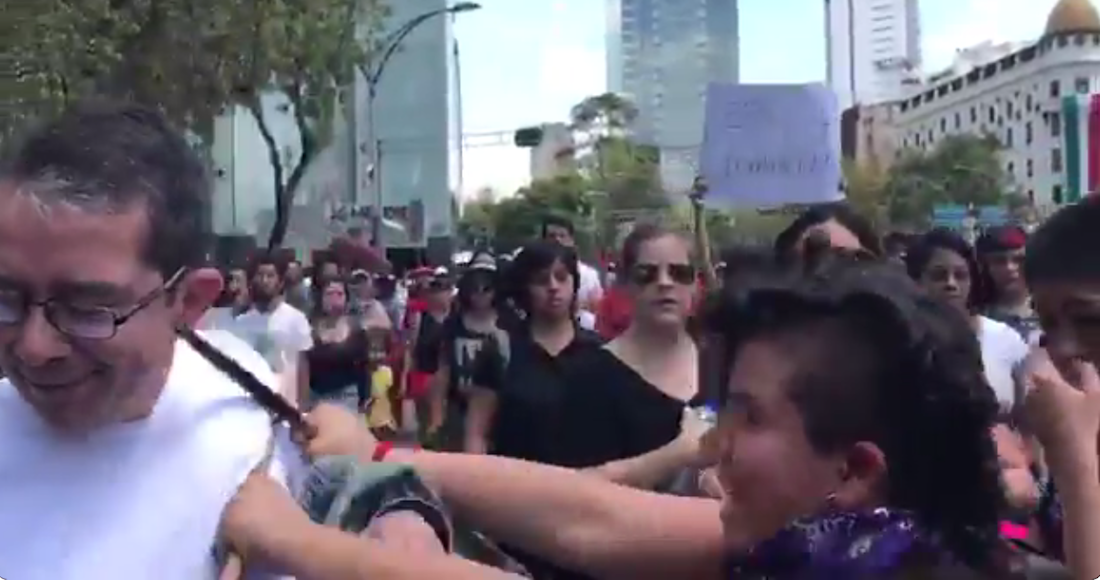 Ciudad de México, 17 de septiembre (SinEmbargo).- El periodista Jenaro Villamil fue expulsado de la marcha por Mara Castilla por un grupo de mujeres que sostenían que los hombres debían de ir en la parte de atrás del contingente.