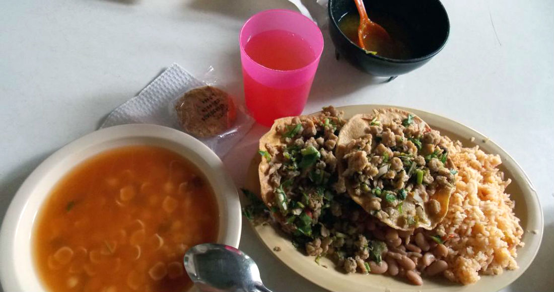 "¿Qué pasaría si yo no hubiera agarrado el comedor, si yo no lo tuviera?", me dice Lupita sin parar de coordinar la cocina ni atender su tortillería. "Ya ves que está ahora muy caro todo, está muy difícil. Entonces así ayudo a su economía y a que coman rico y calientito". La comida que sirve no dista mucho de la que preparan en las fondas que abundan en la ciudad: sopa de pasta, arroz, un guisado como plato fuerte, frijoles hervidos y agua hecha con polvo de sabor naranja. Lo que marca la diferencia es el precio. En cualquier cocina económica, una comida corrida cuesta en promedio $50 pesos (unos $3 dólares). Pero Lupita sólo cobra diez (poca más de medio dólar) ¿Qué clase de comida podría esperar uno por ese precio?