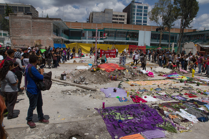 Ciudad de México, 25 de septiembre (Vanguardia/SinEmbargo).- Cientos de activistas, entre estas asociaciones defensoras de los Derechos de la Mujer, levantaron un memorial y colocaron ofrendas, también protestaron en lo que hoy es un terreno, pero antes del terremoto era un edificio de cuatro pisos que albergaba a cuatro empresas extranjeras las cuales se desplomaron tras el sismo del pasado 19 de septiembre.