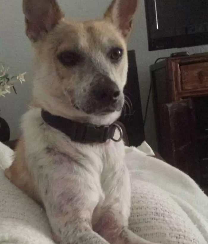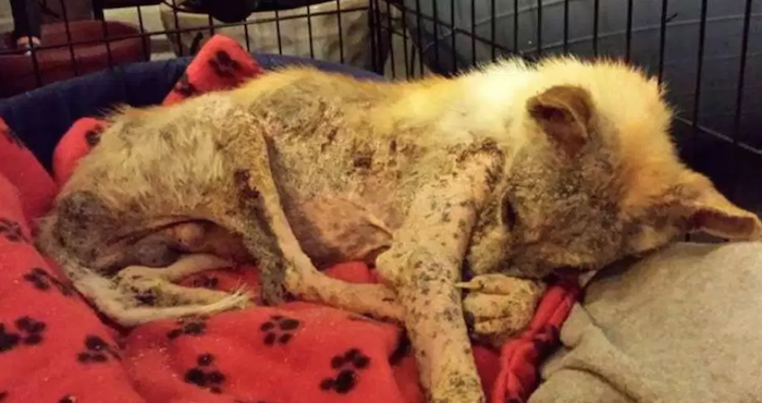 Las secuelas de los abusos eran evidentes, Rusty tenía costras en la piel y había perdido la mayor parte de su pelo.