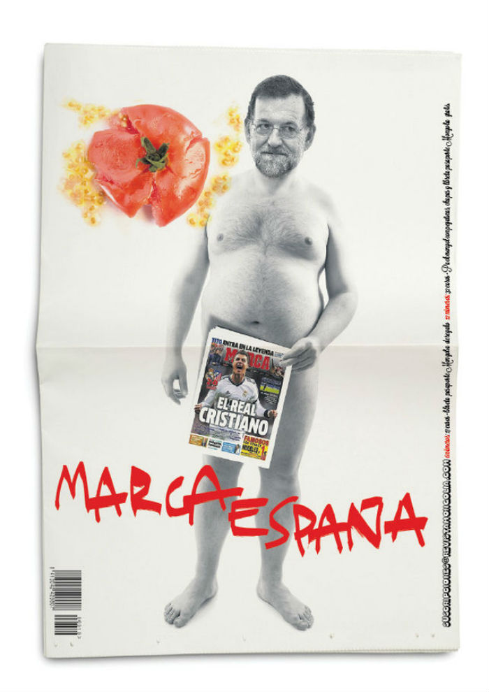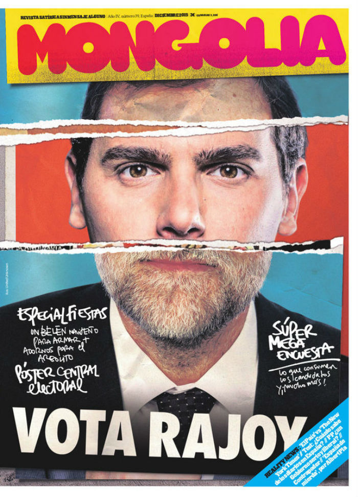 "A ver, vamos a ver: eran las elecciones, no sabíamos qué poner de portada y nuestra fotógrafa salió a la calle a darle a la maquinita a ver si teníamos una imagen potente y, ¡zasca!, nos trajo una foto del cartel de campaña de Mariano Rajoy. No era gran cosa, Mariano Rajoy, sin ir más lejos. Pero, casualidades de la vida, a nuestra directora de montaje se le ocurrió rascar la foto por si traía premio. Sacó una moneda, rascó la foto y… ¡premio! Debajo de la foto de Rajoy había una de Albert Rivera. Buscamos en internet a ver qué ganabas si debajo de una foto de un cartel de Rajoy te aparecía una foto de Albert Rivera. Encontramos una página web que lo aclaraba con una tabla de relaciones entre símbolos y premios: si te tocaba un naranjito debajo de la foto Pedro Sánchez, te ganabas un balón del Mundial ‘82; si te tocaba la cara de Chanquete debajo de la foto de Pablo Iglesias, te llevabas un kinder sorpresa sin la sorpresa; y si te tocaba la foto de Albert Rivera debajo de la de Mariano Rajoy, podía significar dos cosas: