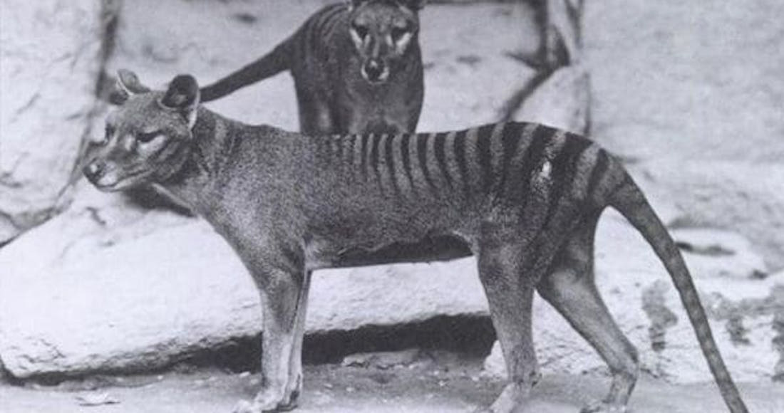 El último tigre de Tasmania, lobo marsupial o tilacino (Thylacinus cynocephalus) habría muerto en el zoológico de Hobart en 1936: se llamaba Benjamín. Hay quienes creen que aún quedan ejemplares en la isla que le dio su nombre. Siempre estuvo asociada su extinción a la desidia del hombre: la caza intensiva, la ocupación de sus hábitats naturales y los efectos de las especies invasoras (perros salvajes) eran las causas más valoradas por los expertos.