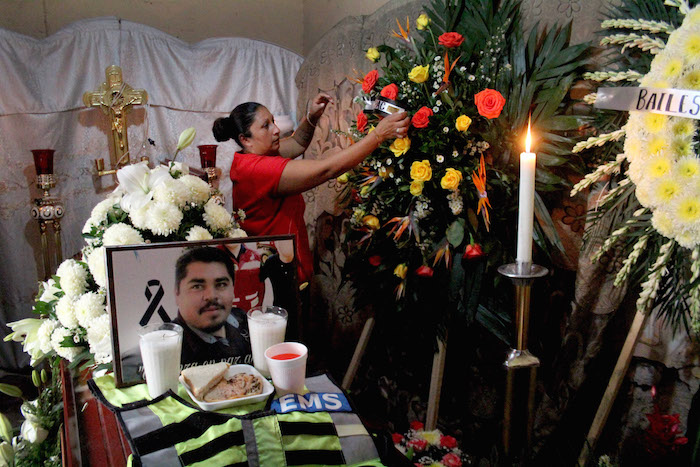 Aspectos del velorio de Edgar Daniel Esqueda Castro, fotógrafo de nota roja, espectáculos y rescatista. Foto: Marcelo Palacios, Cuartoscuro
