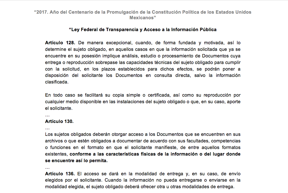 Pero ese ciudadano deseoso de Transparencia no tendrá el documento de manera gratuita. Para entregárselo, Los Pinos se atiene a la Ley Federal de Transparencia y Acceso a la Información. Así que le cobrará 598.50 pesos por un cúmulo de 32 hojas. Cada hoja cuesta 50 centavos; su reproducción, 16 pesos. Además por el envío deberá pagar 16 pesos.