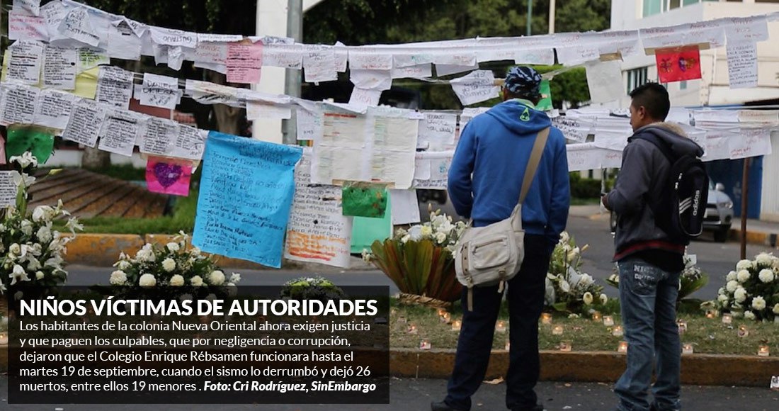 Ciudad de México, 19 de octubre (SinEmbargo).- Se cumplió un mes después del sismo del 19 de septiembre, y el Colegio Enrique Rébsamen –ubicado en la Delegación Tlalpan de la Ciudad de México–, donde murieron 26 personas (21 niños y cinco adultos), se convirtió en un cadáver de concreto entablado.