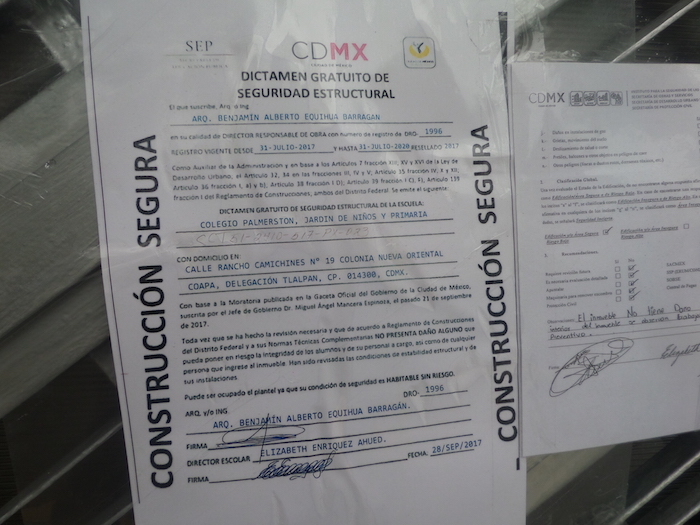 El Rébsamen convive entre edificaciones “inseguras, de alto riesgo'', que tienen el ingreso restringido, y es custodiado, a sus espaldas, en la calle Rancho Camichines, por otro plantel educativo, el Colegio Palmerston, donde ya regresaron los niños a tomar clases, justo después de que el arquitecto Benjamin Alberto Equihua Barragán dictaminara que el edificio no presenta daño alguno.