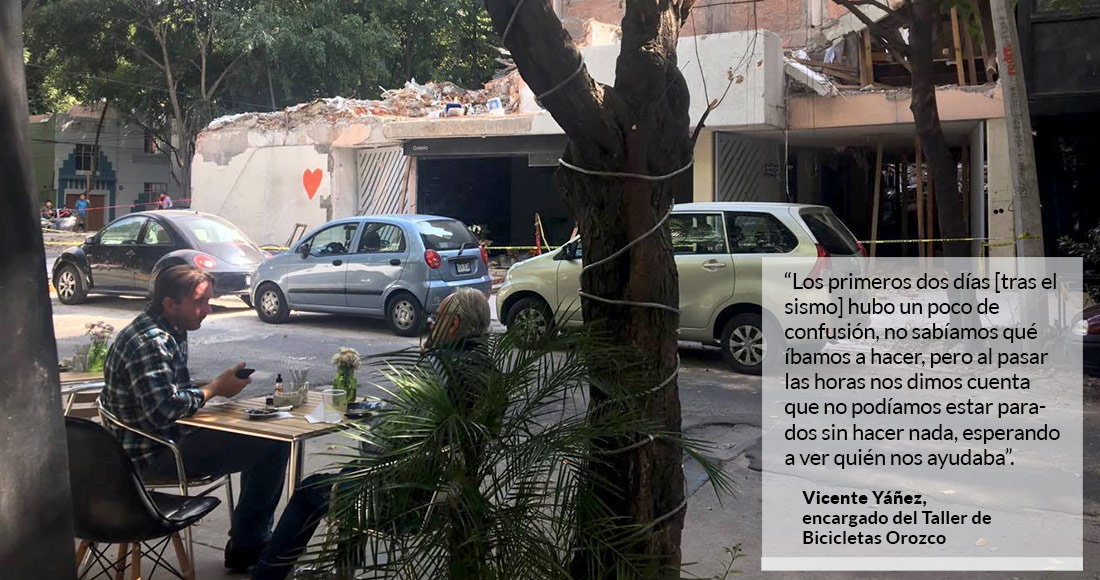 La cicatriz que marcó la Ciudad de México de sur a norte, desde Xochimilco hasta Lindavista, no sólo derrumbó edificios, también dejó inhabitables miles más. Otros, en riesgo de colapso, imposibilitan que las casas y departamentos vecinos continúen sus labores, como es el caso del Taller de Bicicletas Orozco, un negocio familiar que opera en Avenida México 13, desde hace 85 años.