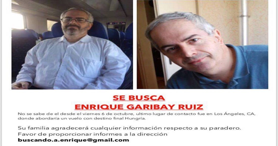 Enrique Garibay Ruiz viajó a Los Ángeles de vacaciones, pero el pasado 5 de octubre desapareció. El físico mexicano llegó a territorio estadounidense el pasado 15 de septiembre procedente de Europa; la última persona que supo de él fue su esposa a través de una llamada telefónica.