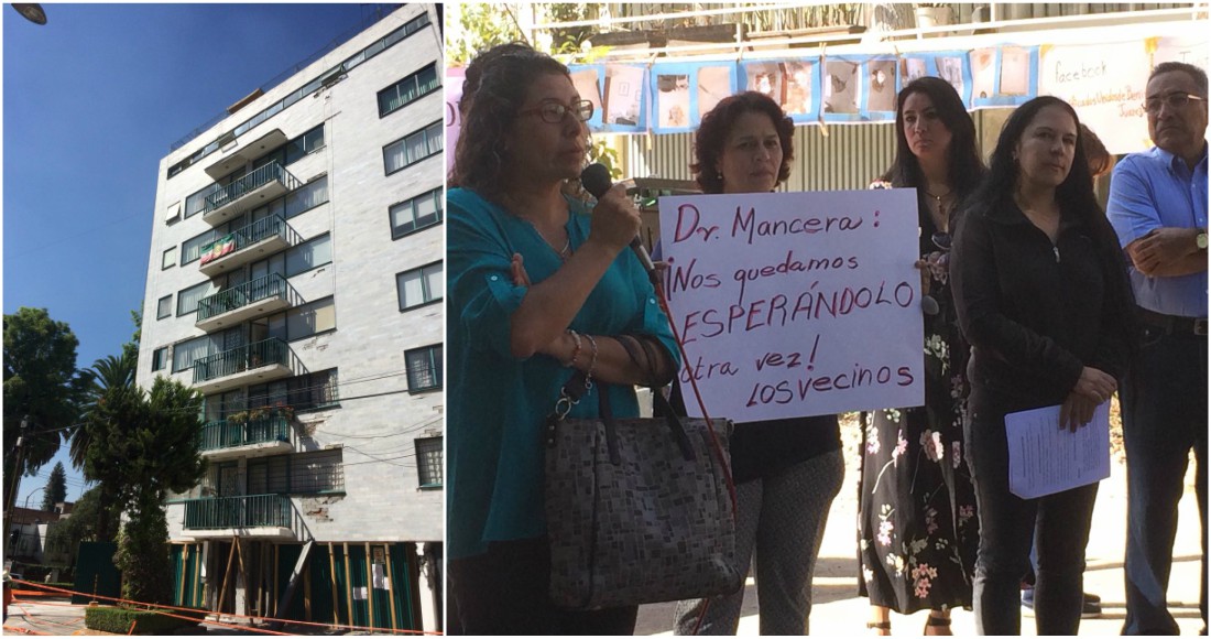 Ciudad de México, 4 de noviembre (SinEmbargo).- “Dr. Mancera: ¡Nos quedamos esperándolo otra vez!”, reza el mensaje de decenas de vecinos damnificados de la Delegación Benito Juárez para el Jefe de gobierno capitalino, quienes a 46 días del sismo del 19 de septiembre de este año, exigen soluciones a las autoridades para poder realzar sus vidas.