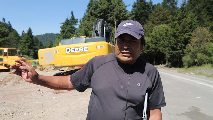 "El gobierno federal no respeta los derechos que tiene nuestra comunidad. Papeles ancestrales son los que nos respaldan y nos mantienen en esa lucha", agregó bastón en mano y a espaldas a un fragmento de la construcción.