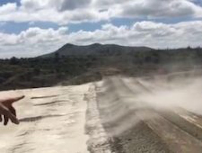 Así, aunque ya no se están depositando jales en la presa que está encima del pueblo, sí lo hacen en otros lugares que dan a otra cañada, el problema continúa, pues con el viento el polvo se levanta y cae sobre la comunidad, además de que contamina el pozo porque este se mete por los resquicios y generalmente una de las puertas de la estructura que lo tapa permanece abierta.