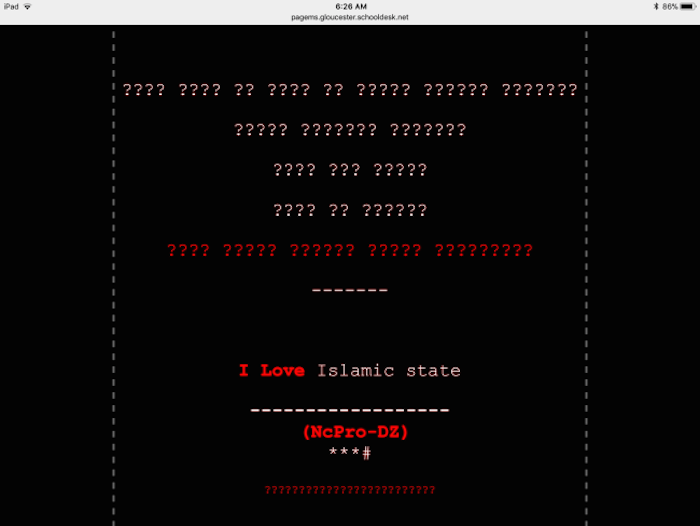 SchoolDesk, la compañía que mantiene el portal, dijo que sus técnicos descubrieron un pequeño archivo que fue inyectado en la raíz de uno de sus portales web. Eso desvió el tráfico de aproximadamente 800 websites escolares a un video en YouTube que contenía un mensaje en árabe y una imagen del ex Presidente iraquí Saddam Hussein.