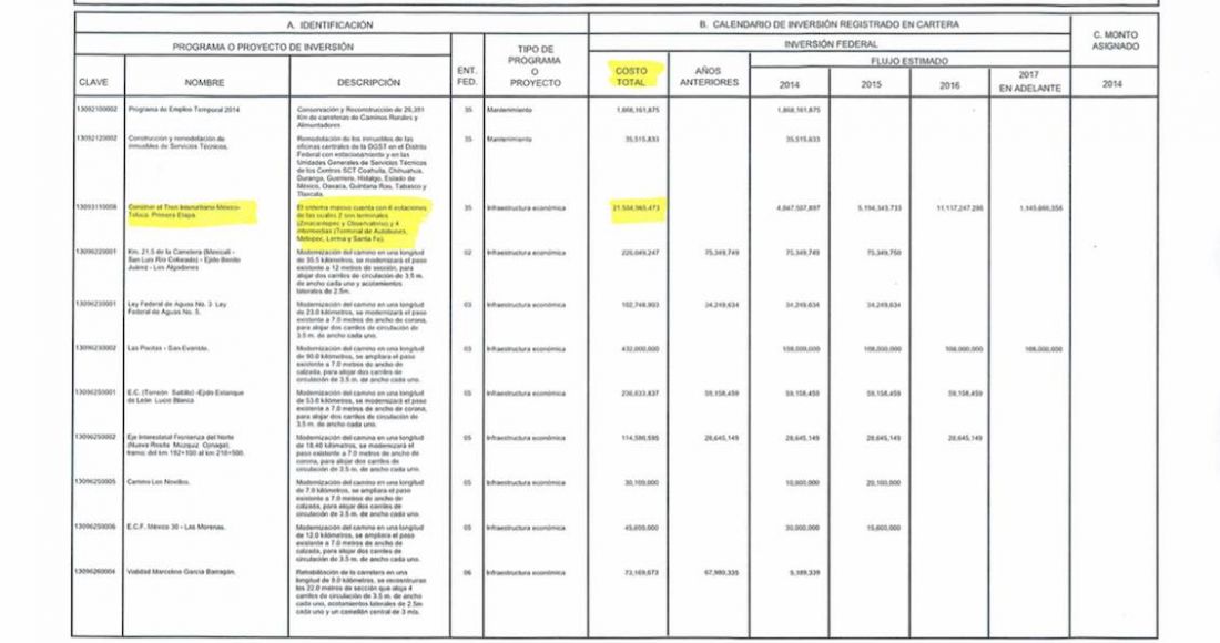 Mientras, la Auditoría Superior de la Federación (ASF) encontró importes por aclarar que suman mil 102 millones 29 mil 500 pesos tan solo en la revisión de la cuenta pública 2016. Las irregularidades detectadas fueron en la la falta de liberación del derecho de vía, en el proceso de licitación, la rendición de cuentas del proyecto y la calidad de la obra y cobros indebidos.