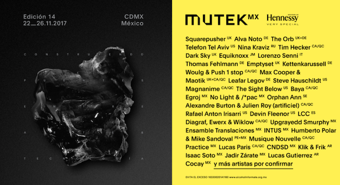 MUTEK es una plataforma internacional para la diseminación y el desarrollo de la creatividad digital en el sonido, la música, las artes audiovisuales y la tecnología inmersiva. Su objetivo es proveer una plataforma para los artistas más originales y visionarios que trabajan actualmente en estos campos; la intención es promover un espacio de iniciación y descubrimiento para las audiencias.