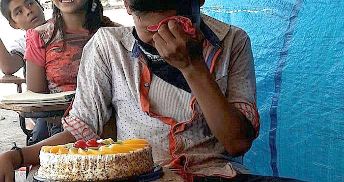 Después de que le regaló el pastel, el primero en su vida, Julio exclamó un: Gracias maestra.