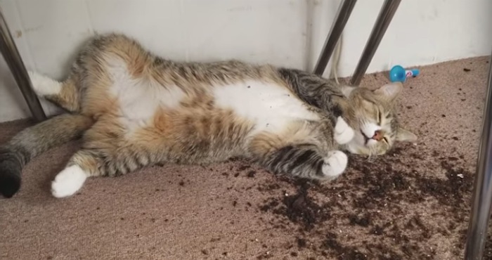 Las imágenes muestran las macetas tiradas por el suelo y las plantas de marihuana dañadas. Las verdaderas estrellas del video, sin embargo, son los dos gatos, tan 'colocados' que apenas pueden moverse.