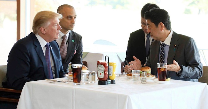 La postura dura de Trump en asuntos como comercio y seguridad tiende a tener una recepción mixta en Japón, que ve a Estados Unidos como a su aliado y socio más importante. Pero el interés de Trump por la versión japonesa de la hamburguesa, producto netamente estadounidense, está cayendo bien a muchos japoneses.