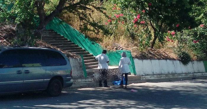 También colocaron decenas de cruces de cartón y madera en las escalinatas de Catedral.