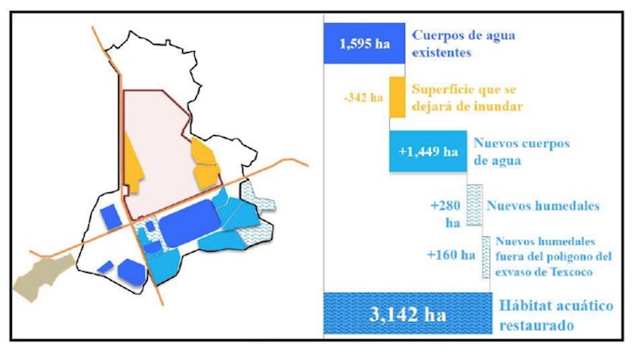 El especialista en impacto ambiental también destacó que se entregaron al Gobierno de Chimalhuacán 200 hectáreas, una parte del terreno destinado al plan de rescate hídrico para compensar el daño con lagunas. Esta zona aledaña es controlada por Antorcha Campesina, un movimiento ligado al Partido Revolucionario Institucional (PRI).