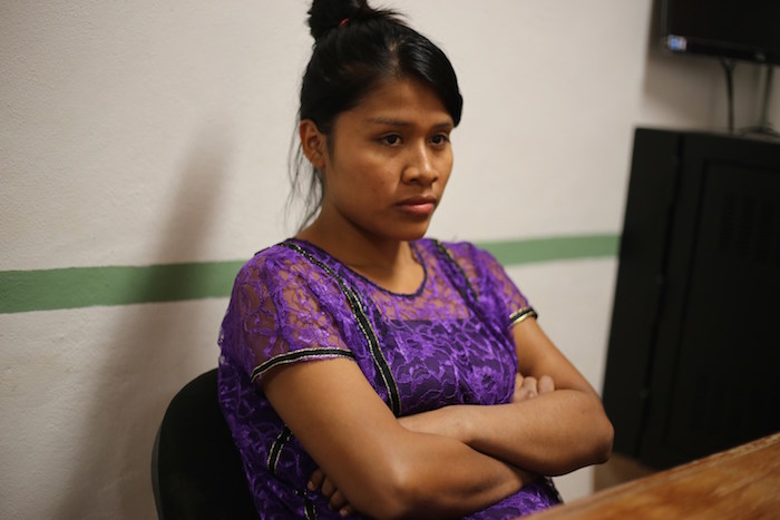 María Pineda, bilingüe, habla con fluidez y decisión en español sobre su experiencia en la oficina de K’inal Antzetik, que dirige la reconocida defensora de derechos de las mujeres indígenas, Hermelinda Tiburcio Cayetano.