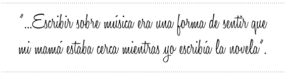 Tengo una devoción especial por el chelo, porque es el instrumento que tocaba mi abuelo, tiene que ver con eso, ya había un chelo en Saudades y hubo un chelo en Vestigios porque Gimena Jiménez Cacho musicalizó ese libro en la presentación. El chelo es porque hay una parte de mi vida que no tiene relación con la música, porque no me dedico a la música, no toco ningún instrumento, pero soy una amante de la música y admiro enormemente el trabajo de los músicos, porque me parece que trabajan con el más inasible de los elementos de la creación. Hay otra parte que tiene que ver con la familia Schifrin que es la familia materna, que llegaron a la Argentina a principios del siglo XX, mi abuelo tenía 13 años cuando llegó y su padre había sido director de coros en Europa, entonces, le enseñó a cada uno de sus hijos un instrumento para que pudiera ganarse la vida y todos ellos terminaron tocando en la orquesta del Colón. Mi madre que no se dedicaba a la música era una melómana absoluta y nos transmitió un poco esa pasión absoluta, pero sobre todo escribir sobre música era una forma de sentir que mi mamá estaba cerca mientras yo escribía la novela.