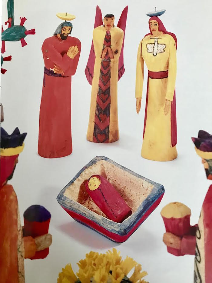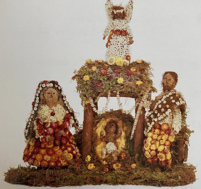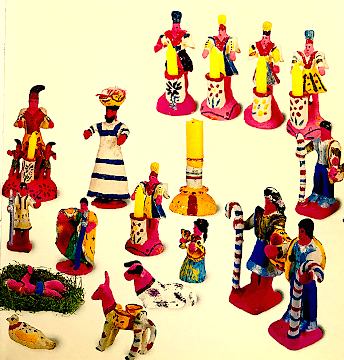 Ella, que ha anotado por todas partes cómo se viste y disfraza, cómo baila y come la gente de cada rincón y cada cima, sabe cuándo las figuras de un nacimiento llevan la marca de cada cultura local: su vestuario, sus gestos. Porque cada conjunto de piezas ha sido formado con una meticulosa atención tanto en los elementos indispensables para montar un nacimiento en todas partes como en las invenciones variadas de cada región y de cada artesano, sus materiales distintos, sus siempre sorprendentes destellos.