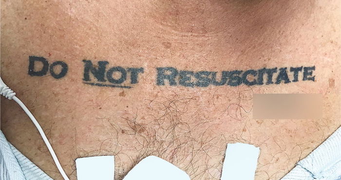 La última voluntad de este hombre, sin identificación ni familiares que le acompañaran estaba escrita en un tatuaje en el que claramente se leía “no resucitar”, lo que provocó que los médicos se reunieran en una junta urgente.