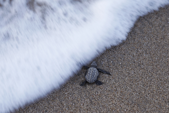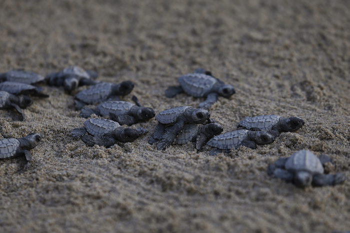 Las pequeñas tortugas se enfilan con gran determinación al mar, guiadas por su instinto natural, pero con la ayuda de los humanos: unas 35 mil tan solo este año.
