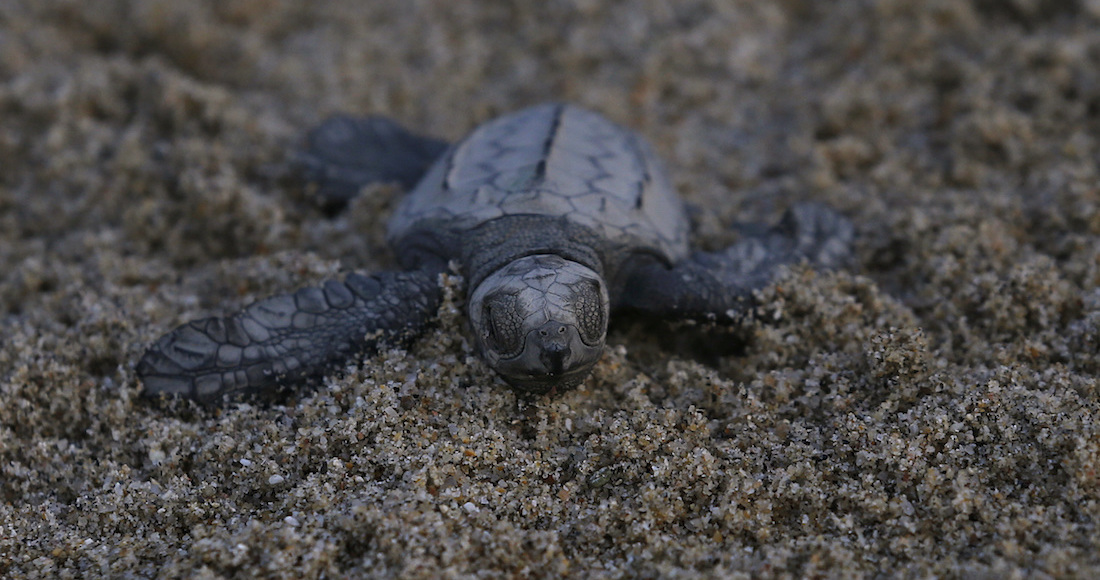 Las pequeñas tortugas se enfilan con gran determinación al mar, guiadas por su instinto natural, pero con la ayuda de los humanos: unas 35 mil tan solo este año.