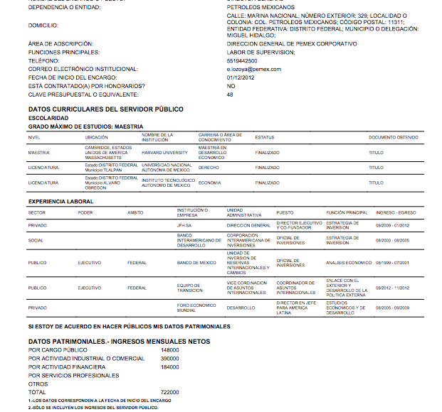 Mientras fue servidor público, Lozoya Austin no sólo tuvo cuentas bancarias. También contaba con un fondo de inversión en dólares americanos, así como títulos en organizaciones privadas. Los montos en las cuentas de Lozoya sólo fueron públicos en 2013, en su declaración patrimonial “inicial”. Después se abstuvo de publicarlos. En 2016, cuando renunció, su declaración final se redujo a su currículum.