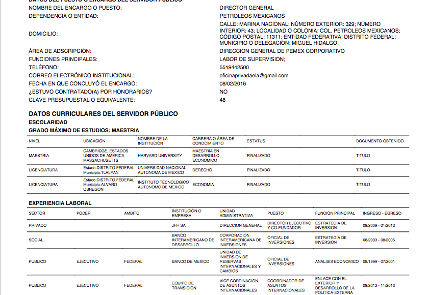 Al final, en 2016, cuando dejó la otrora paraestatal, determinó ser aún más discreto y ya no hizo público si tenía inversiones o cuentas bancarias.