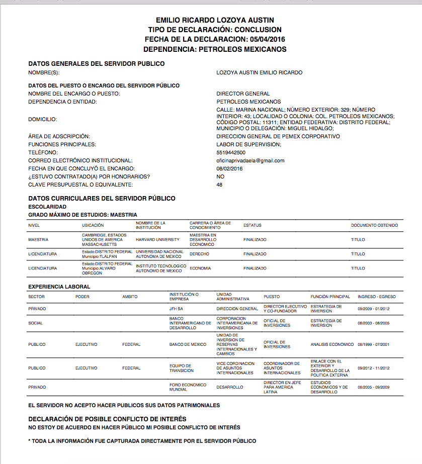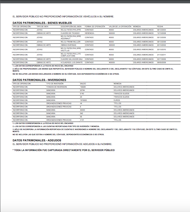 Al final, en 2016, cuando dejó la otrora paraestatal, determinó ser aún más discreto y ya no hizo público si tenía inversiones o cuentas bancarias.