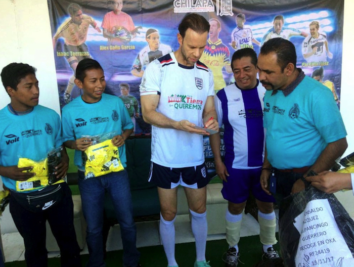 “Dentro de los terrenos del fútbol es una ayuda importante que nos hace sentir bien, es como retribuir por algo tan fundamental. Tenemos que regresar algo a la sociedad y que mejor que sea un lugar como Chilapa. Ojalá no sólo sea acá que podamos llevar un poco de alegría y felicidad a la gente”, agregó el ex futbolista del América. Dijo que junto a sus compañeros que más tarde tendrían una presentación en Chilapa no llevaban seguridad especial, que sólo van en caravana.