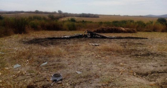La avioneta fue encontrada calcinada en un sembradío de maíz ubicado a la orilla de la carretera federal México-Acapulco, a menos de 2 kilómetros de un helipuerto donde se presume que los tripulantes trataron de aterrizar.
