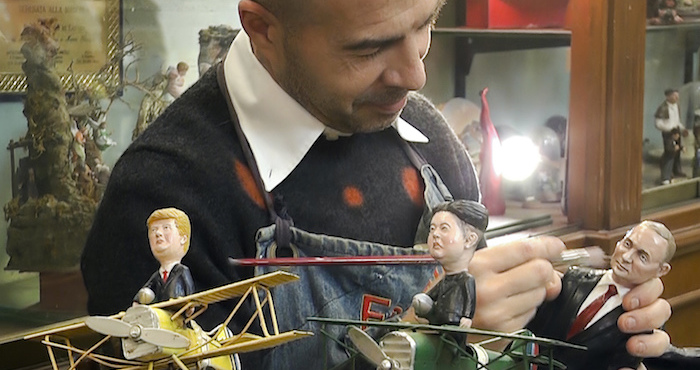 El artesano Marco Ferrigno dijo que hizo las estatuillas de Trump y Kim como broma. Desde su taller en el centro histórico napolitano dijo que los dos “dan un poco de miedo por la forma en que se están enfrentando”.