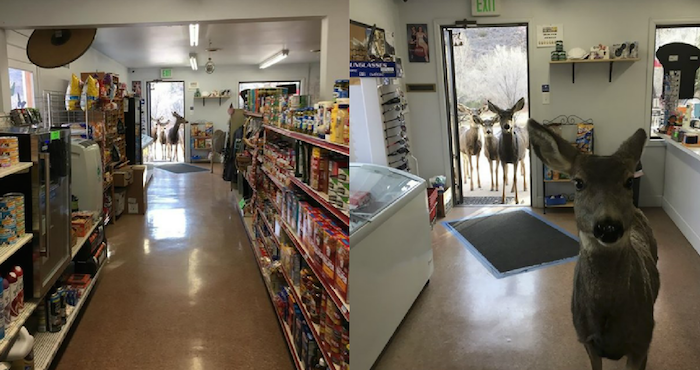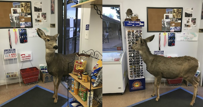 La comerciante no daba crédito a lo que sus ojos veían, la cierva parecía entender que estaba en una tienda. Foto: Lori Jones.
