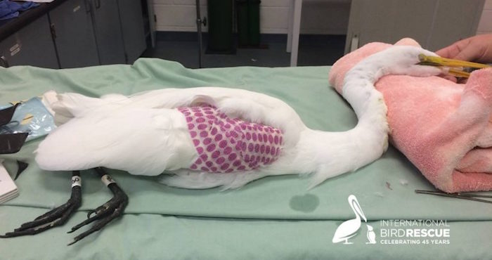 El ave pertenece a la especie garceta, y se recupera de dos impactos de bala que le causaron serias heridas.
