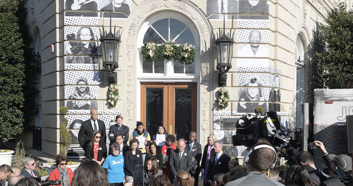 De la mano de Inside Out Project, un grupo de arte colaborativo, las grandes imágenes de las caras de algunos de esos jóvenes presidieron hoy las palabras de senadores y activistas por la defensa de sus derechos y representaron la diversidad y la unidad que conforma Estados Unidos.