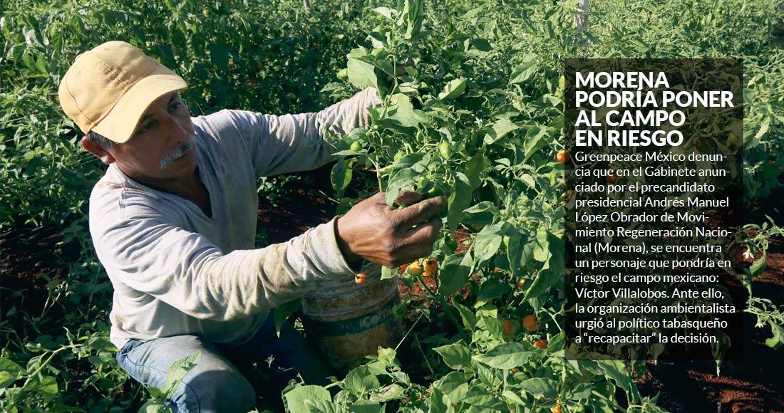 Ciudad de México, 23 de diciembre (SinEmbargo).- La organización Greenpeace México, con presencia internacional, reclamó que en el Gabinete anunciado por el precandidato presidencial Andrés Manuel López Obrador de Movimiento Regeneración Nacional (Morena), se encuentre un personaje que pondría en riesgo el campo mexicano: Víctor Villalobos.