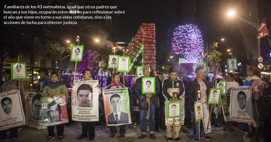 Esto se da en víspera de la Navidad, cuando los padres de los 43 continúan realizando acciones de exigencia para la aparición con vida de sus hijos, como la marcha en Ciudad de México y la ocupación de casetas de peaje.