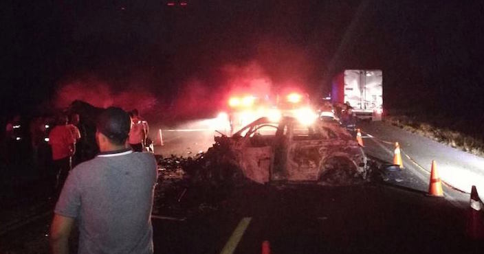 Las primeras versiones indican que los cuerpos calcinados de los cinco turistas, un chofer y un copiloto contratados para trasladarlos de Zihuatanejo a Acapulco quedaron en una camioneta tipo Van.